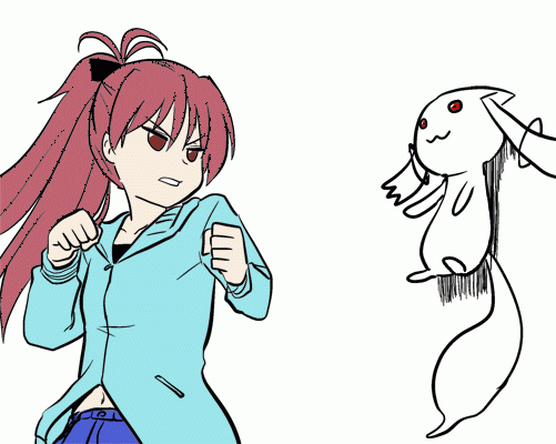 In fact, Sayaka was a tomboy and she was the only witch on camera so far that personally engaged intruders right off the bat.