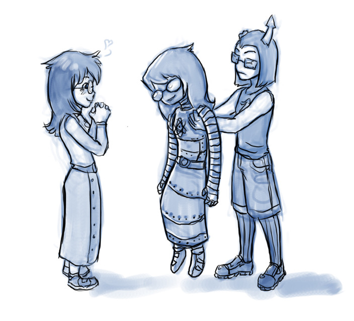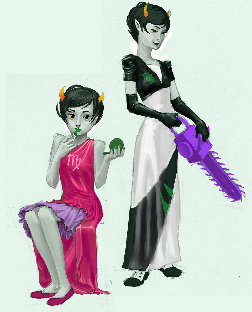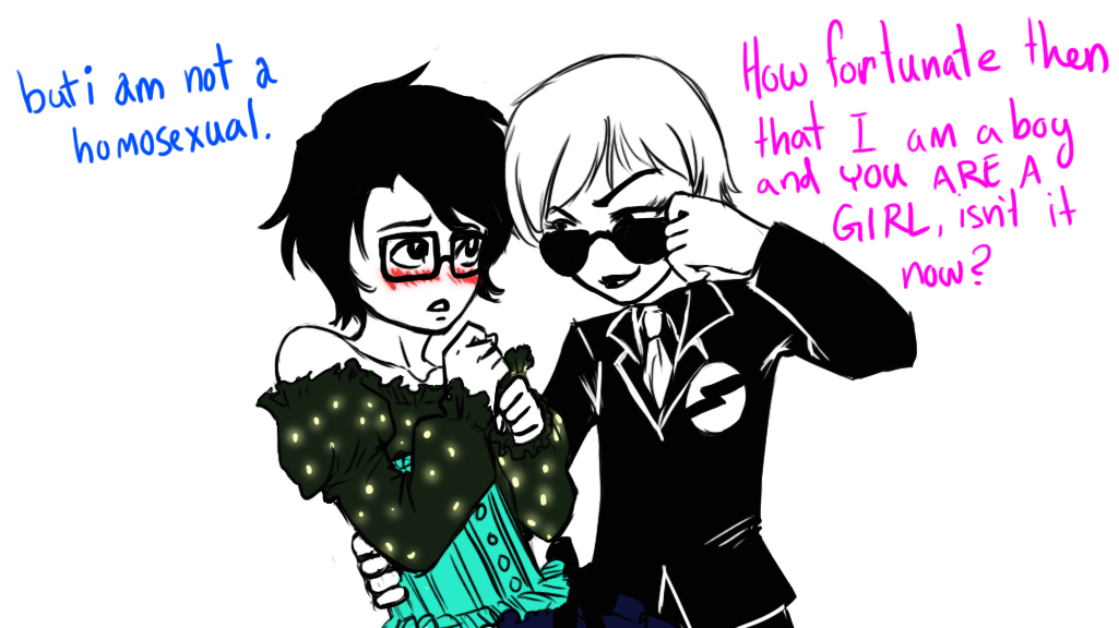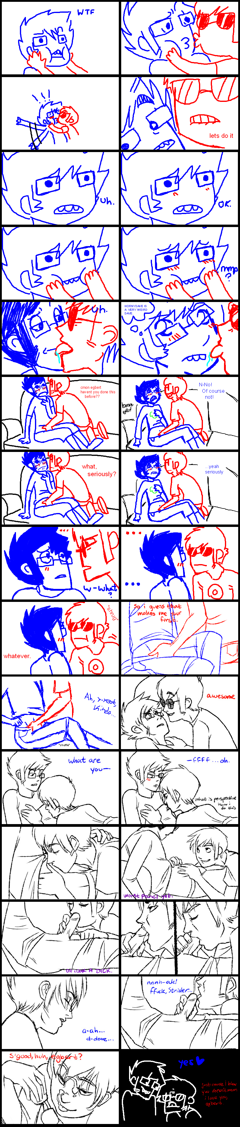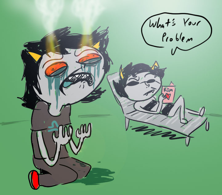 John’s jaw fell slack along with his body. He was helpless before her. Everyone had warned him. He’d heard her called a bitch. Well, right now he was the bitch. “Vriskaaaaaaaa…” John whined pathetically, eyes closed tight and not even saying it for any coherent reason at all. The bucktoothed boy with thick glasses was fast becoming the well-loved plaything of the manipulative little troll.
