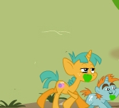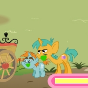10/28/10(Thu)05:13 No.20836761>>20836752 ---- Mane awoke with a start at the lack of wingbeats. Rising to her hooves, the filly stared at the dark stone of the large clifftop, the blazing fire, and the eight or so dragons sitting nearby. Raile had divested herself of the howdah, and was engaged in animated discussion about...something. Mane squeaked in surprised as a little brown dragonet popped up from beside the howdah, carrying a large sheaf of fresh mountain grass. With a grunt, he set it down, saluting. "Rations for you, Ma'am! On the order of Jarl Rockscale-says you can't eat all the apples, after all." Mane smiled weakly, and took a bite of the grass-and twisted her head in surprise at the tough texture. With a frown, she bit down harder, and was rewarded by sweet juice and a clean snap. Chewing grimly, she finished off the first mouthful, and turned to the brown dragonet, who seemed disappointed at her reaction. "I had a feeling it'd be too tough-but it was the only grass that was close." His original eager smile turned down slightly. "It might be better dried, but, well..." He shrugged, grinning sheepishly. "No, no! It's fine, just a little tougher than I'm used to, really." Mane smiled back ingratiatingly, taking another bite. It wasn't half bad, she mused, even if it WAS tough-juicy, and with a certain rainy indistinctity that the Ponyville grass lacked. The size of the sheaf was easily enough to hold her for several days, however. She swallowed. "What's your name?" The dragonet, who had been lying against the sheaf of mountaingrass with his arms folded behind his head, started slightly. "Oh? Uh. It's Geode. My parents think I have potential, y'see, even though I'm so unremarkable. Like a geode-it just looks like a regular old rock, and then you crack it open, and it's amazing inside. Jarl Rockscale must agree; he took me on as his retainer." |