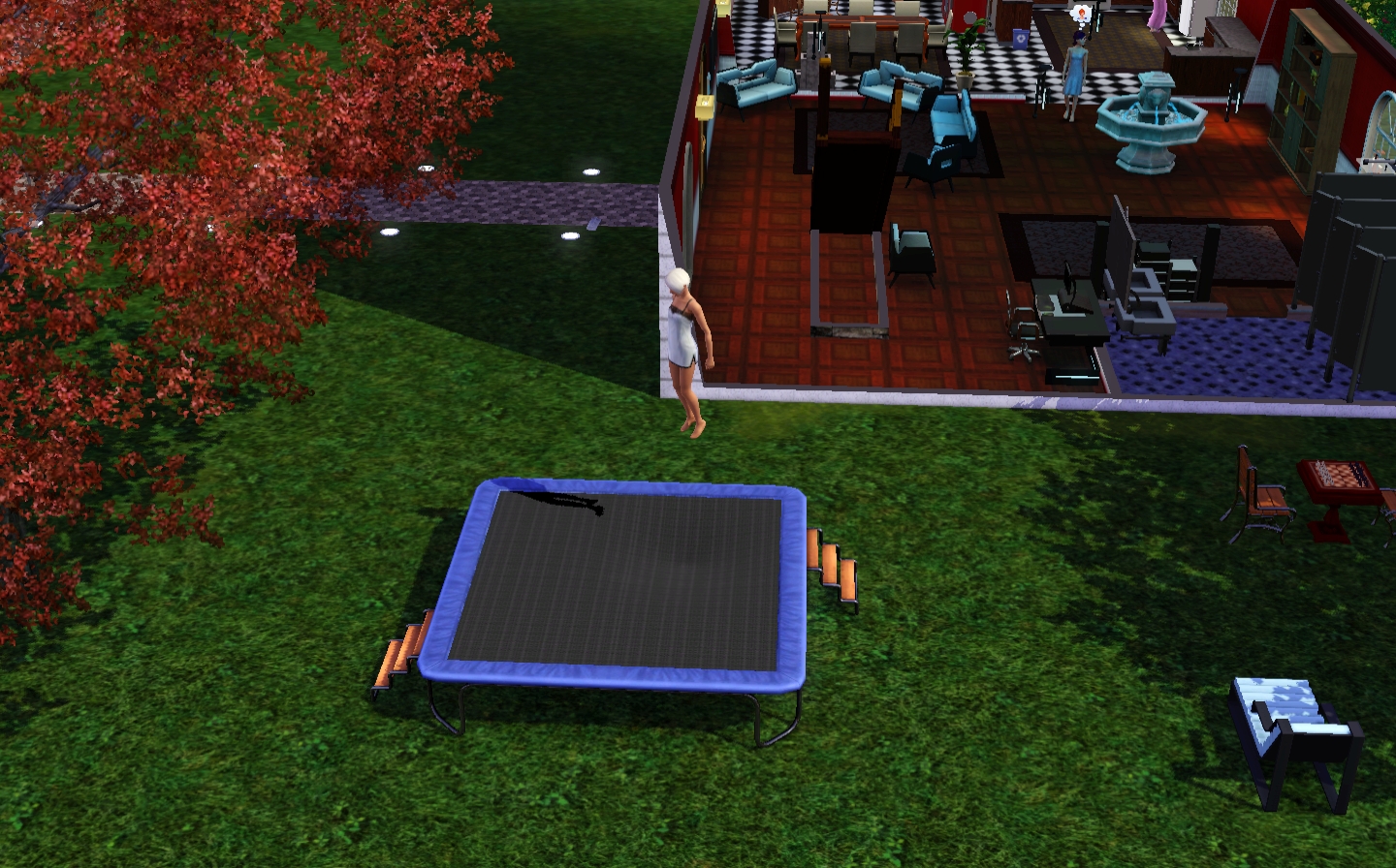 there's a fountain in the room because i can put one there. also empty space.