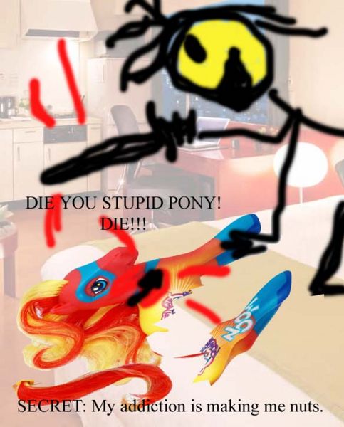 I was birthed to spread my harmony across this whole world And I spread my magic onto the rest of all these foals I'M NO MARE!!!! Oh, I give the gift of friendship, make more gods like what I am I'M A GOD!!!!