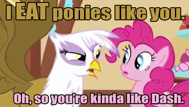 Big Macintosh and Spike team up and simply stomp over the traps (Rarity's trap cuts off part of Big Mac's mane and he shrughs it off claiming "it will grow back", Twilight's trap surrounds Spike by books full of knowdeledge that stay out of his reach, and he just sets them on fire to read them later, etc. They either destroy or ignore the rest.) Eventually, they arrive at the big guy's lair, break it's shit, set the girls free and return to Ponyville to finish what they were doing before, Twilight later writes a letter to Celestia where she admits that "boys are different and it's wrong to judge them under a girl's point of view"
